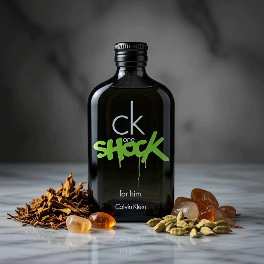 CK One Shock for Him surges from a green-spicy opening to a leathery, woody base. Here's the breakdown: