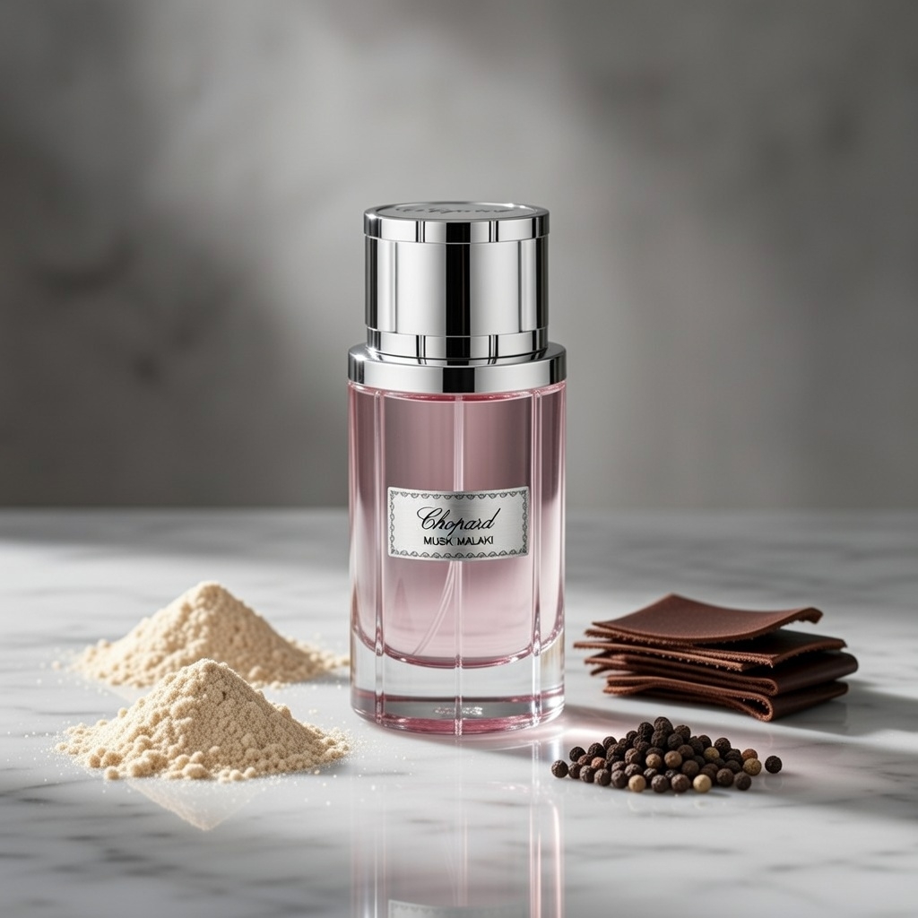 Launched in 2017 as a key chapter in the prestigious Malaki collection, Musk Malaki by Chopard draws from Eastern traditions to create a hypnotic blend of clean musk purity and warm, leathery sensuality. It captivates musk enthusiasts and oriental woody fans with its fresh-spicy-powdery duality. This Eau de Parfum delivers strong longevity (often 8+ hours) and potent sillage that lingers intimately, evoking luxury intimacy and timeless allure.