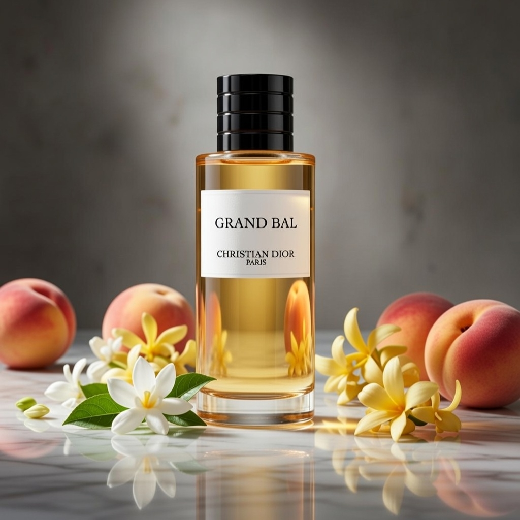 Grand Bal opens with a bright, invigorating burst of bergamot and orange blossom—delivering sunny, citrusy freshness with a soft floral edge that energizes from the first spray. The heart blooms with opulent sophistication through jasmine (Grasse absolute), ylang-ylang, and subtle peach-hedione—adding rich, exotic white floral depth with a radiant, airy twist. It dries down to a clean, enveloping base of white musk and sandalwood—creamy, powdery, and subtly woody with that signature Dior refinement.