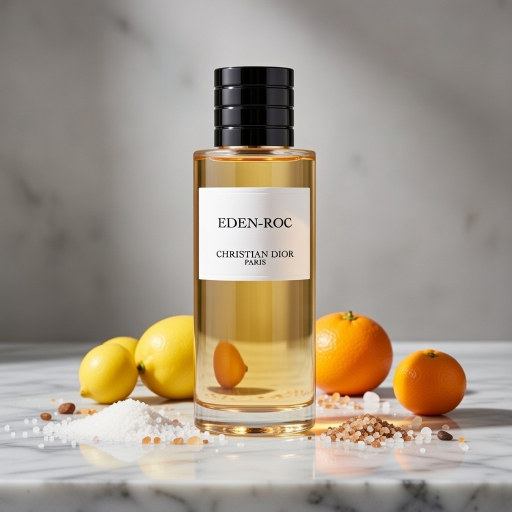 Eden-Roc opens with a bracing, invigorating burst of sea salt, mineral notes, and citruses—delivering crisp, oceanic freshness with a sun-heated rock edge that energizes from the first spray. The heart unveils an abstract "Far Niente" sophistication through jasmine, coconut, and mastic/lentisque—adding creamy, floral-tropical warmth with a subtle green herbal twist. It dries down to a grounding, woody base of pine tree and labdanum—aromatic, resinous, and subtly balsamic with that signature Dior refinement.