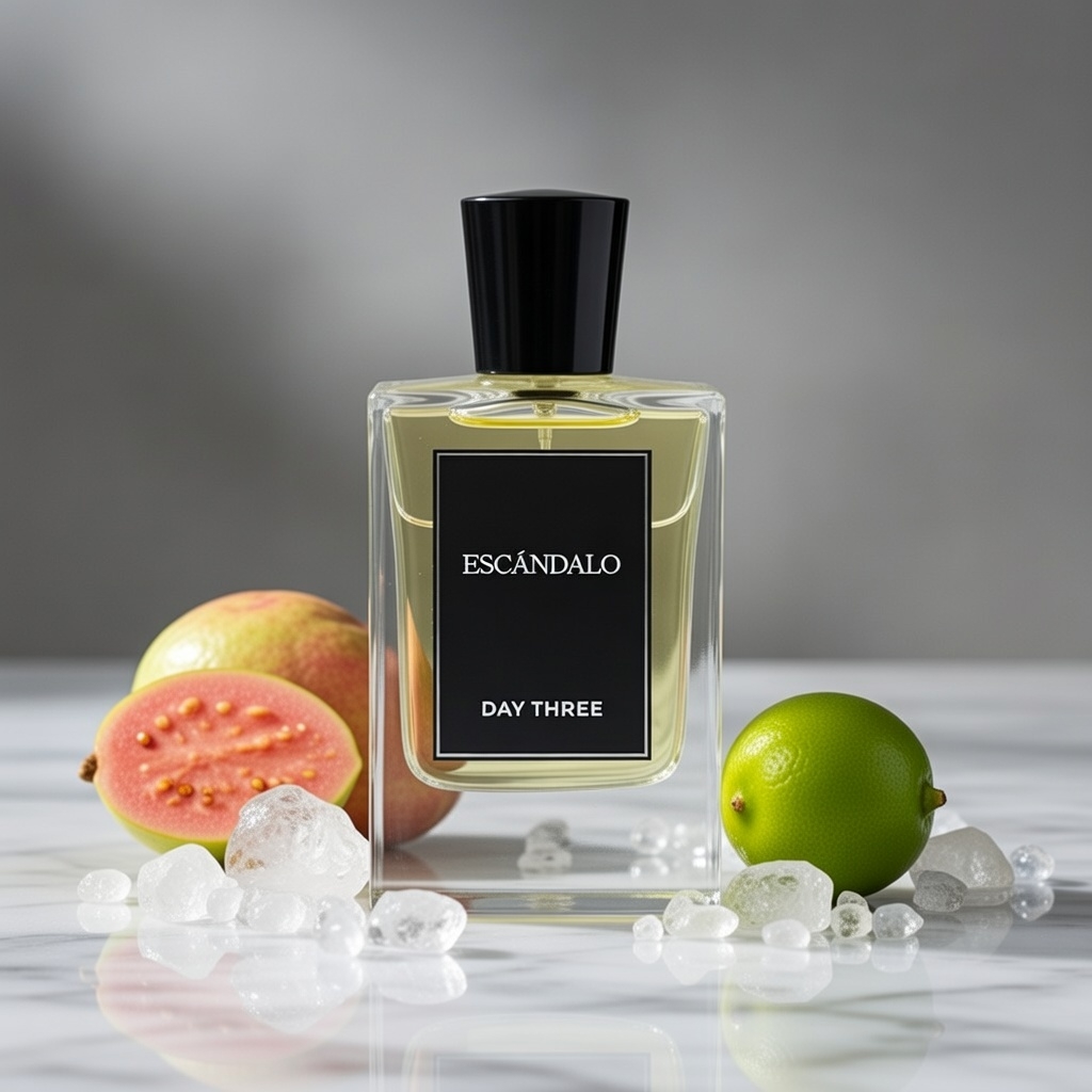 Capture intimate allure with Day Three Escándalo, the enchanting floral fragrance launched in 2024 by the award-winning artisanal house Day Three Fragrances. Crafted by perfumer Michael Paul, this extrait de parfum evokes a couple dancing bachata in secret on a secluded Dominican beach at dawn—sunrise warming tropical foliage, exotic flowers blooming, guava sweetness in the air, and the sensual rhythm of hidden passion bottled for moonlit summer nights.