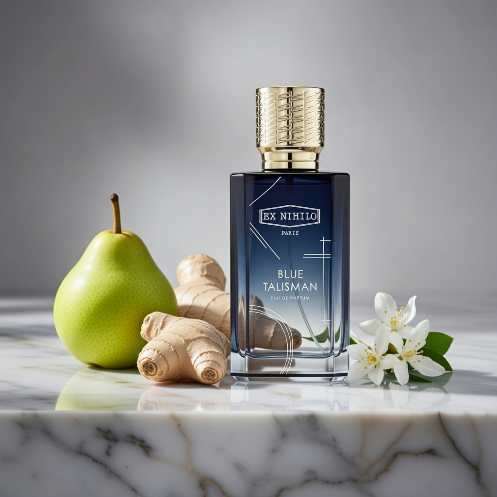 Unveil vibrant, contemporary luxury with Ex Nihilo Blue Talisman, the captivating Eau de Parfum launched in 2023 by perfumer Jordi Fernández. This modern fruity-musky masterpiece bursts with juicy pear and sparkling citrus—bergamot, mandarin orange, and zesty ginger—evolving through ethereal orange blossom and innovative Georgywood, then settling into a clean, addictive base of musk, Ambrofix™, Akigalawood, and cedar for a fresh, uplifting, and irresistibly charismatic aura. It's bright yet sophisticated, fruity yet musky, airy yet grounded—like a burst of candied pear and ginger spice wrapped in soft white flowers and warm amber-woody embrace, intimate and endlessly wearable.