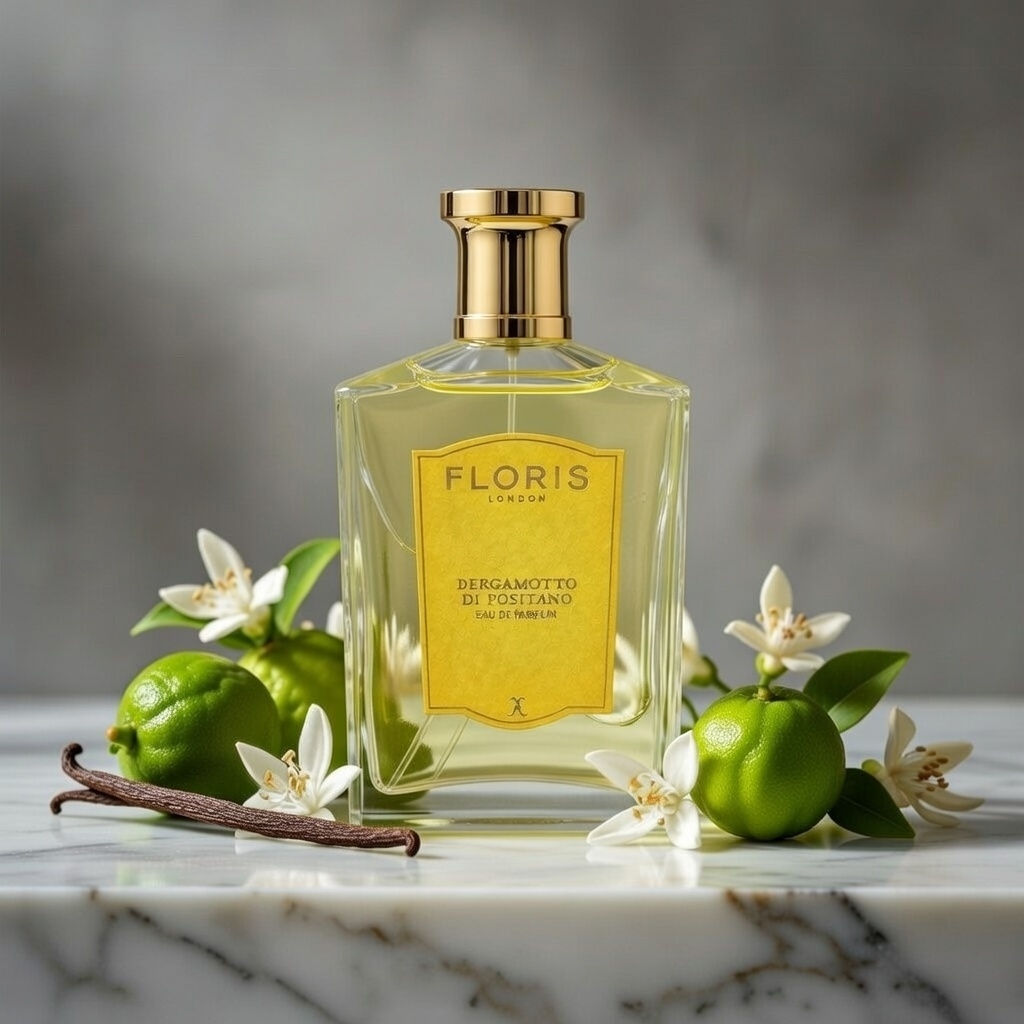 Unveil radiant, coastal luxury with Floris Bergamotto di Positano, the invigorating Eau de Parfum launched in 2016. This citrus aromatic masterpiece captures the sun-drenched Amalfi Coast—bursting with bright bergamot, mandarin orange, and marine sea notes, evolving through creamy vanilla, orange blossom, green tea, and ginger, then grounding in warm amber, woodsy notes, ambrette musk, and subtle spices for a fresh, uplifting, and elegantly balanced aura. It's juicy yet creamy, citrusy yet marine, bright yet warm—like a breeze-swept lemon grove by the sea blended with soft vanilla ice cream and salty air, intimate and endlessly refreshing.
