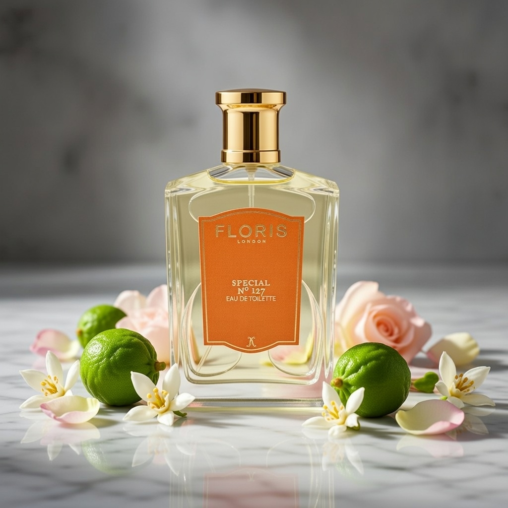 Unveil historic, timeless luxury with Floris Special No. 127, the legendary Eau de Toilette originally created in 1890 for a Russian prince and later released publicly. This citrus aromatic masterpiece blends zesty bergamot, orange, and petitgrain with aromatic lavender, evolving through lush neroli, geranium, rose, and ylang-ylang, then grounding in clean musk and earthy patchouli for a fresh, fizzy, and elegantly refined aura. It's bright yet floral, citrusy yet herbal, classic yet invigorating—like a sparkling citrus soda infused with blooming English roses and subtle soapy cleanliness in a Victorian garden, intimate and endlessly sophisticated.