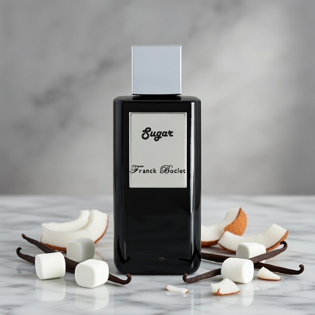 Satisfy your sweetest cravings with playful, addictive indulgence in Franck Boclet Sugar, launched in 2017 as a Floral Fruity Gourmand Eau de Parfum (unisex) from the French niche house—evoking the irresistible allure of sugary confections through marshmallow, honey, and fruity sweetness layered over creamy vanilla and musk for cozy, joyful wear. This gourmand masterpiece opens with fluffy marshmallow, honey, blackcurrant (cassis), and coconut, delivering a sweet-tart tropical burst, then blooms with juicy pear, peach, jasmine, and violet, anchoring in rich vanilla, caramel, orange blossom, and white musk for a creamy, powdery, and endlessly comforting trail. It's fluffy yet fruity, sweet yet balanced, gourmand yet wearable—like a burst of marshmallow-honey fluff laced with cassis tartness and coconut cream over pear-peach juiciness, evolving into warm vanilla-caramel musk in a cozy, uplifting atmosphere.