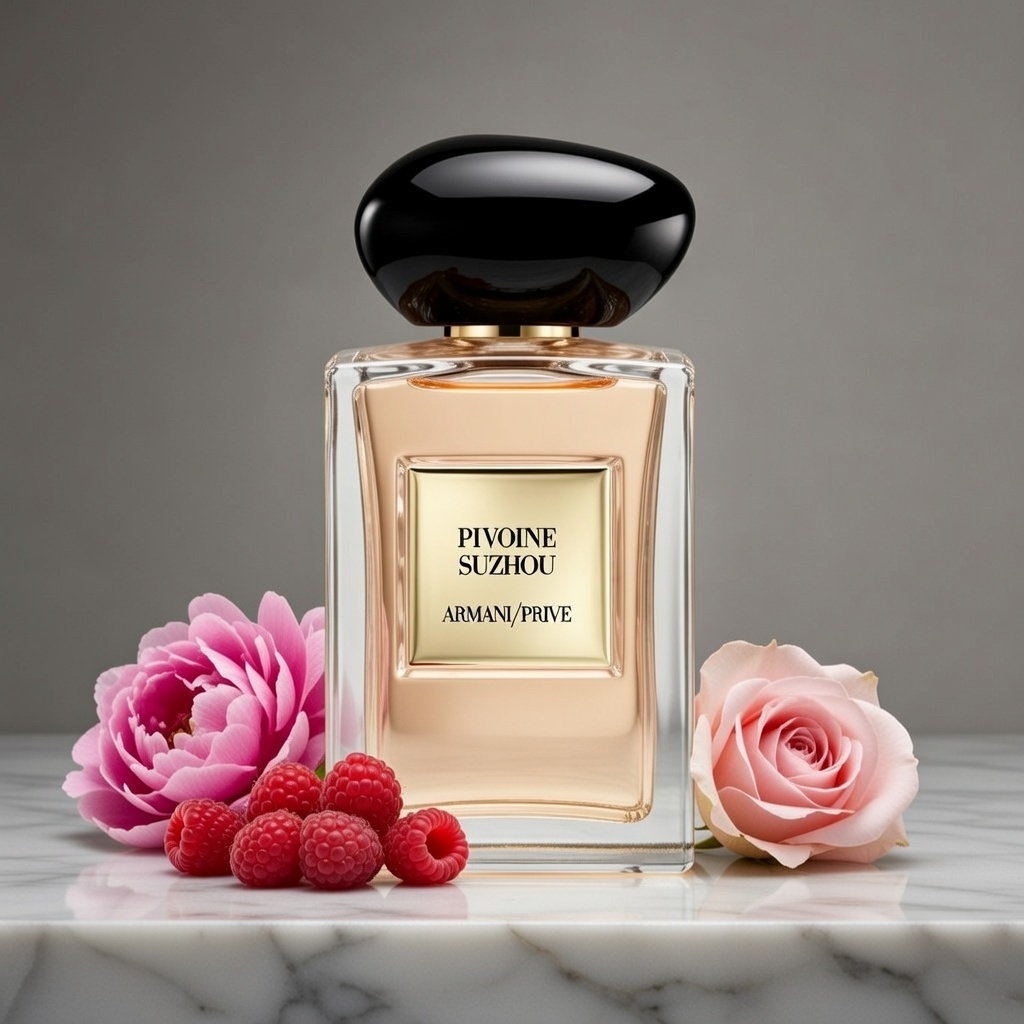 Surrender to a fresh, opulent chypre floral serenity with Armani Privé Pivoine Suzhou Eau de Toilette, launched in 2014 as part of the Les Eaux collection (feminine, versatile appeal) crafted by master perfumers Cécile Matton and Julie Massé—a luminous masterpiece inspired by the legendary gardens of Asia and China's beloved peony, blending juicy fruity brightness, rich rose-peony elegance, and soft musky-ambery warmth. This exquisite gem opens with a vibrant burst of mandarin orange, pink pepper, and raspberry for bright, spicy-fruity freshness with a tangy edge, then unfolds with peony, May rose, and rose for an airy, opulent floral heart, anchoring in a luxurious base of musk, amber, and patchouli for powdery, earthy intensity with subtle warmth. It's floral yet fruity-creamy, fresh yet velvety, garden-inspired yet refined—like sparkling mandarin-raspberry laced with spicy pink pepper over lush peony-May rose and enveloping musk-amber-patchouli, evolving into a lingering, skin-hugging glow in a breezy, paradisiacal atmosphere.