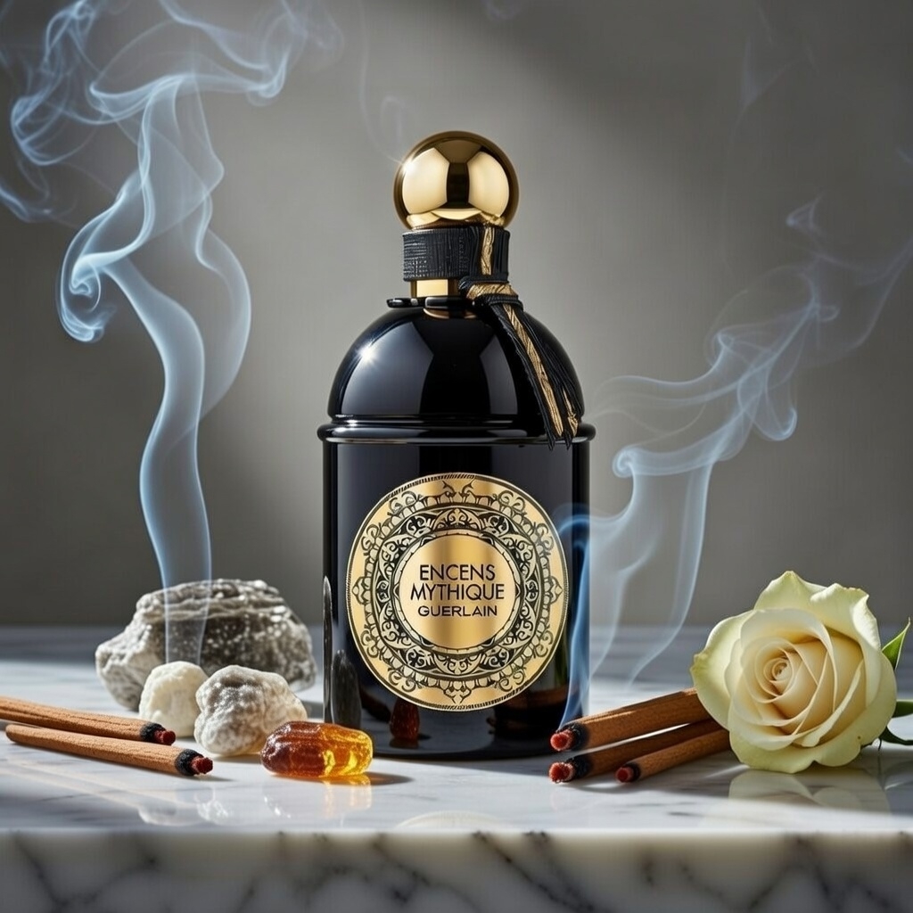 Frequently celebrated as a standout in Guerlain's Les Absolus d'Orient—incense-dominant, ambergris-salty, rose-powdery iconic, with a strikingly luxurious, contrasting vibe—Encens Mythique is described as uniting a sparkling aldehydes-rose-saffron opening, spicy pink pepper-patchouli-vetiver heart, and deep ambergris-olibanum-woody base (often praised as a "refined, addictive incense glow," opulent yet wearable, with powdery lift and sophisticated smoky depth). It’s a versatile cooler-season star (ideal for fall/winter evening mystique or year-round bold wear, perfect from intimate gatherings to sophisticated occasions) that consistently draws compliments for its powerful yet refined projection, elegant sillage, and irresistible unisex magnetism.
