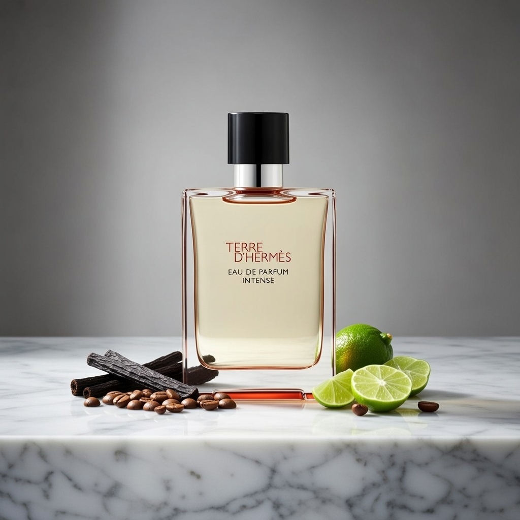 Frequently celebrated as a groundbreaking addition to the Terre d'Hermès family—coffee-licorice gourmand dominant, bergamot-citrus, lava-mineral iconic, with a strikingly deep yet wearable vibe—Terre d'Hermès Eau de Parfum Intense is described as uniting a fresh spicy opening, intriguing coffee-licorice heart, and molten woody-mineral base (often praised as a "fiery gourmand glow," opulent yet approachable, with citrus lift and smoky depth). It’s a versatile cooler-season star (ideal for fall/winter daytime sophistication or year-round intense wear, perfect from office refinement to evening occasions) that consistently draws compliments for its strong projection, elegant sillage, and irresistible modern charisma.