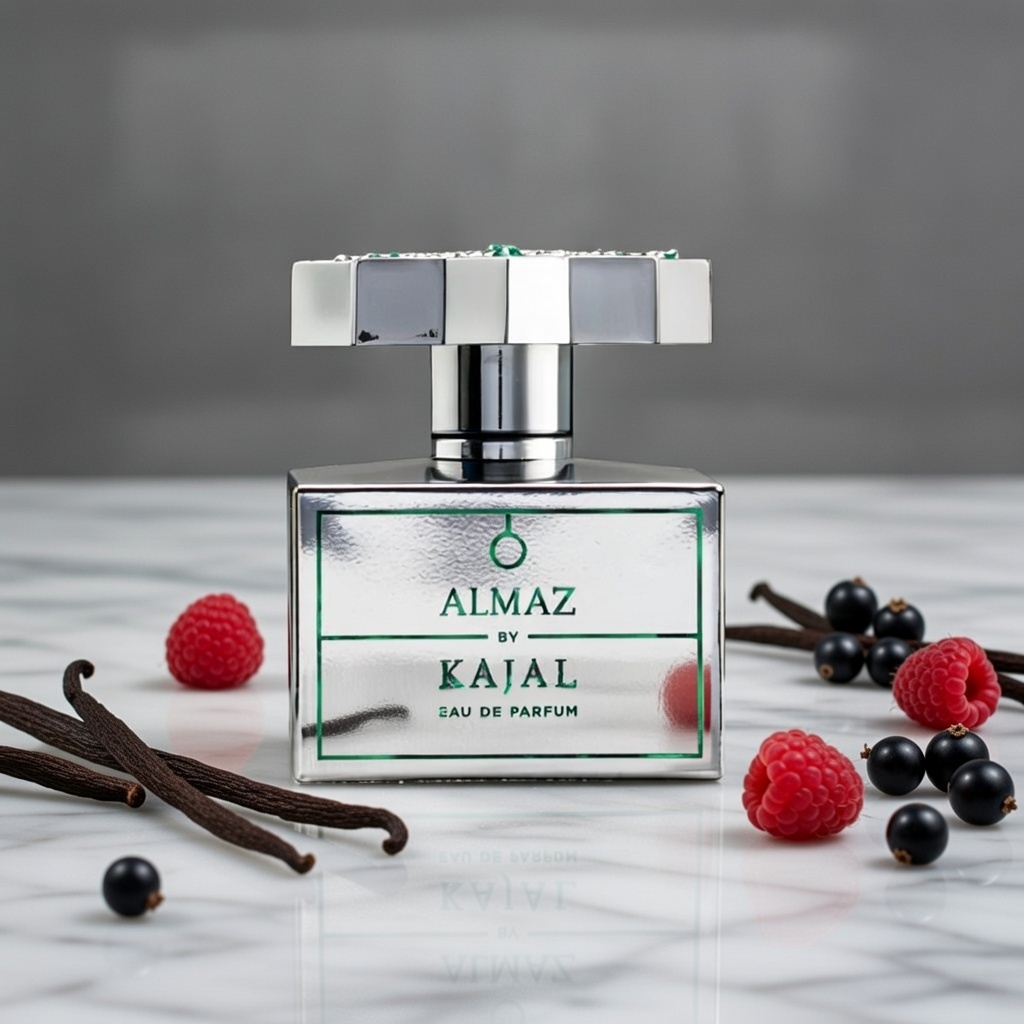 Frequently celebrated as a standout in the Kajal lineup—fruity-dominant, vanilla-gourmand iconic, powdery-floral seductive, with a strikingly unisex yet dazzling vibe—Almaz is described as uniting a juicy blackcurrant-bergamot opening, raspberry-heliotrope heart, and creamy vanilla-amber base (often praised as a "diamond fruity glow," vibrant yet addictive, with tart lift and sweet depth). It’s a versatile all-season star (ideal for spring/summer daytime radiance or year-round mood enhancement, perfect from everyday wear to glamorous moments) that consistently draws compliments for its distinctive projection, elegant sillage, and irresistible charismatic allure.